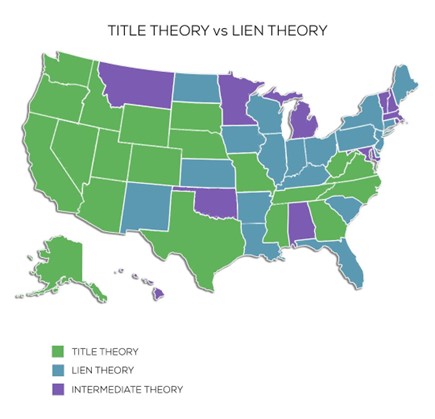Negli stati che seguono la Title Theory, al momento del trasferimento, il titolo di proprietá viene assegnato alla Banca (in questo caso si parla di “deed of trust”). Legalmente, quindi, titolare dell’immobile – e beneficiaria della Title Insurance – é la banca, la quale “concede” al mutuatario il diritto di occupare l’immobile e si impegna a trasferire il titolo non appena il mutuo sia estinto (“Deed of Reconveyance”). In caso di default da parte del mutuatario, la Banca non deve rivolgersi ad un tribunale, puó mandare una richiesta di pagamento al debitore e, se non rispettati i termini assegnati, puó direttamente procedere alla vendita della proprietá e quindi al trasferimento del titolo. La “Title Theory” é adottata in 20 Stati, tra cui California, Washington, Nevada, Colorado.